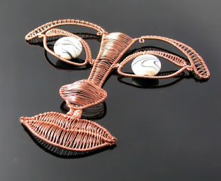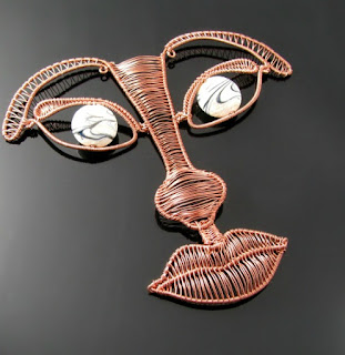 You know how some things will be forever be connected with other things? I worked on the white bead loomed choker while watching the X-Files episode with the dogs and the 1960 Village of the Damned, my very first wire crochet piggy sculpture saw life on Christmas to the sounds of a Max Raabe concert, and this face may be reminding me of a French serial killer *eyeroll* I'll get over it.