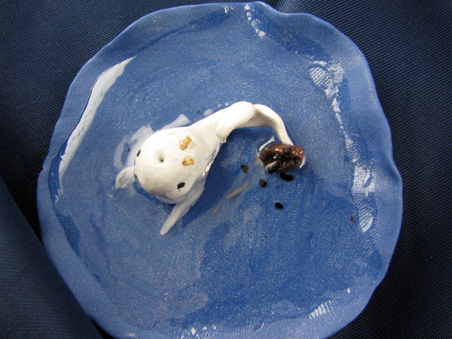 This is my second piece for the Polymer Clay Smooshers challenge "Oceans". At first I thought about a kraken picking up a ship in his tentacles, but I was running out of time, so I settled for Toby. He has been frustrated enough, this should be his hour of fame, if not fortune ;-)
