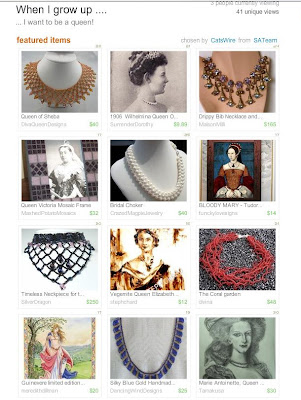This is the title of my latest Treasury West. Actually I am not so sure if I would want to be one. Lots of money, castles, you can buy great clothes and jewelry, but also you have all these official functions, you have to kiss millions of babies and I am sure all that waving sooner or later gives you troubles with your wrist.