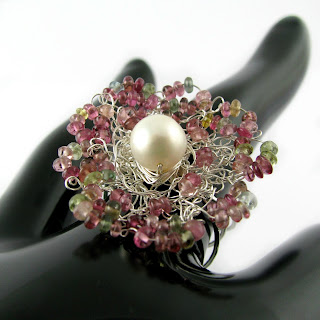Laney's beads just make me smile, be it the chicken, frogs or her flowers. As she was away on a show when I did my lampwork finds post last week, I couldn't show them to you then.