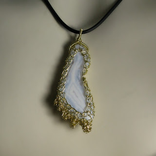 Today I had warped the loom when I found this odd-shaped stone on my nightstand. It had been there for months because I kept hoping for a great idea. Suddenly it hit me what it reminded me of. A wire knit bezel and five crocheted toes later I had this - a foot.