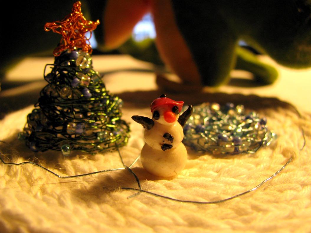 I also created one or the other thing. I made a few wire knit pendants with crystal trees of life ... lives ... crystal bonsais. I loomed, I told Ponder a lot to stop whatever he was doing (sometimes it involved claws, sometimes his act as the black screen of doom), I gave Esme her meds, kissed Meffi on the head and brushed Greebo (suspecting by now that he's really a Yeti with all that hair) and I watched loads of DVDs giving me more ideas ... if I only knew how to realize them yet ...