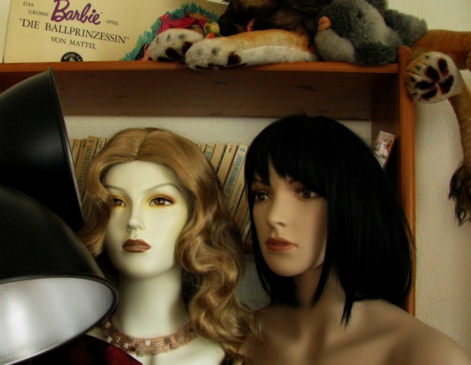 The ladies have moved ... that means partly me *waving from the desk temporarily set up in my bedroom* but also my model ladies Jo and Jacqueline who made it downstairs today. You can tell there are a little confused, also they are not in their regular spot yet, but I hope I can create a temporary photo set-up for them with Buster cheering them along. Yup, they'll have to live in the bunny room for a while, who knows, maybe they'll never want to come out of there again with such a charming host around!