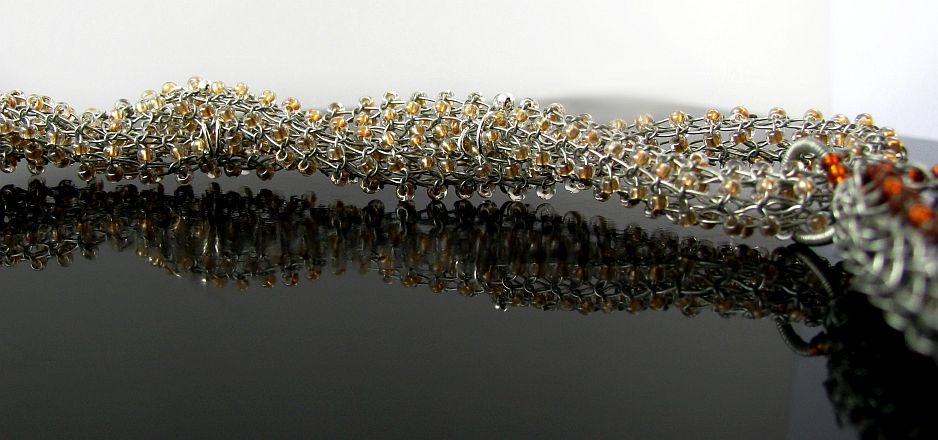 | Necklace with crochet and painted wood beads |
