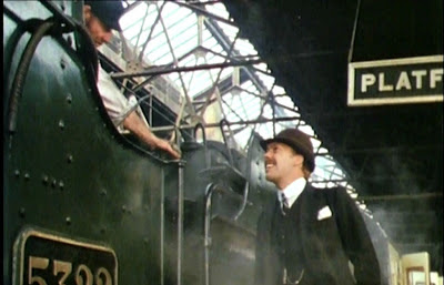 Train driver: Couldn't rightly say. I might be and then again I might not be. If I'm not, I'm the 9:32 for Virginia Water, or the Guilford local.