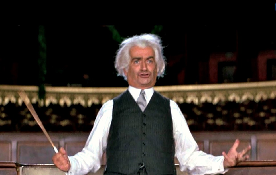 The orchestra is playing and Lefort is conducting passionately. Then when the piece is over, Lefort speaks to the orchestra: